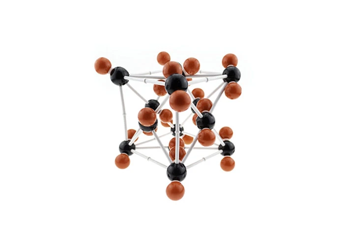 Կարմիր և սև պլաստիկ գնդիկներ, պլաստիկ ձողեր՝ «բջիջներ», ստենդեր օգտագործվում են ածխածնի երկօքսիդի բյուրեղային ցանցի մոլեկուլային կառուցվածքը ցուցադրելու համար (IV)