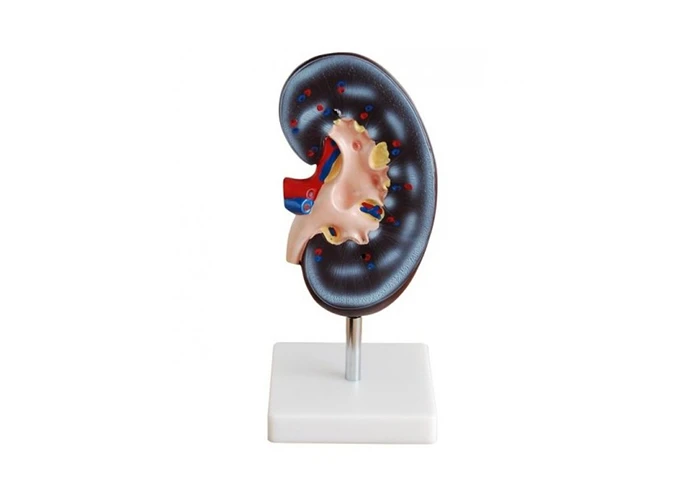 Մոդելը ցույց է տալիս մարդու երիկամի անատոմիան՝ մեդուլլա և երիկամային կոնքը, վերերիկամային գեղձը, երիկամային և վերերիկամային անոթները և միզածորանի վերին մասը: Պատրաստված է պլաստմասից, ներկված վառ բնական գույներով, տակդիրի վրա։ Մոդելի չափը առնվազն 20 սմ է։