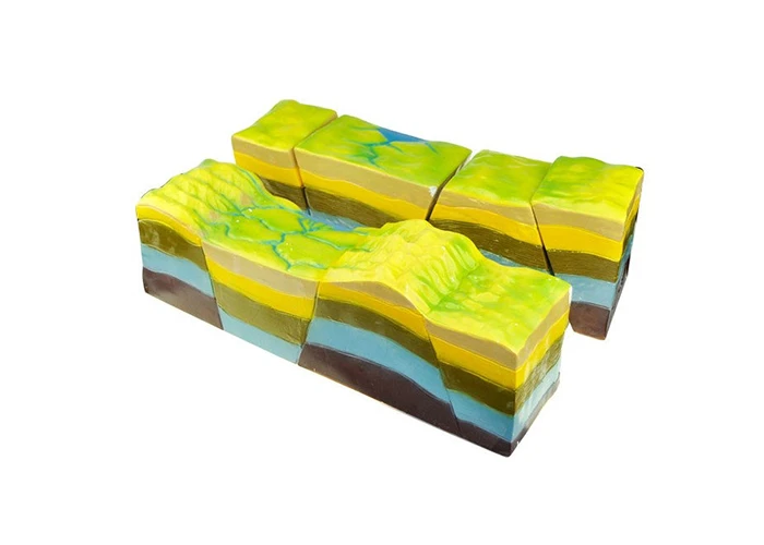 Մոդելը ցույց է տալիս երկրակեղևի կտորներ, որոնք ցույց են տալիս ապարների շարժումը: Պատրաստված է պլաստմասից և ներկված բնական գույներով